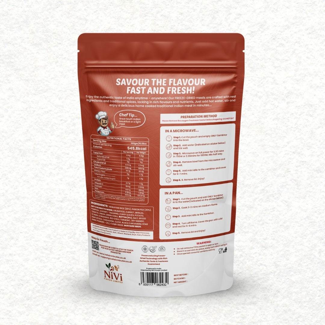 - Quick & Convenient: A wholesome South Indian meal ready in minutes.